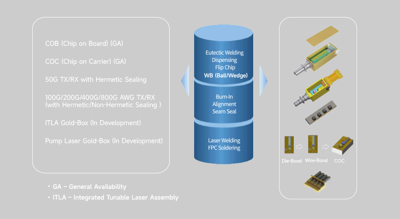 Mature 25G, 56G DML and EML TO packaging and sub-assembly packaging solutions.
